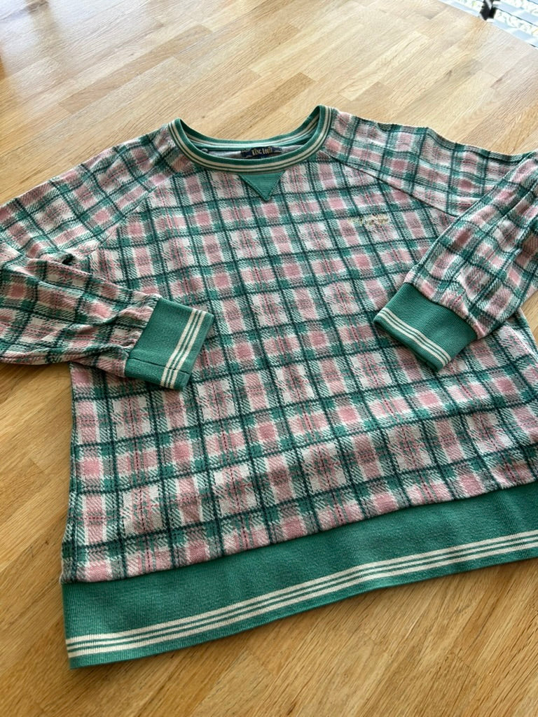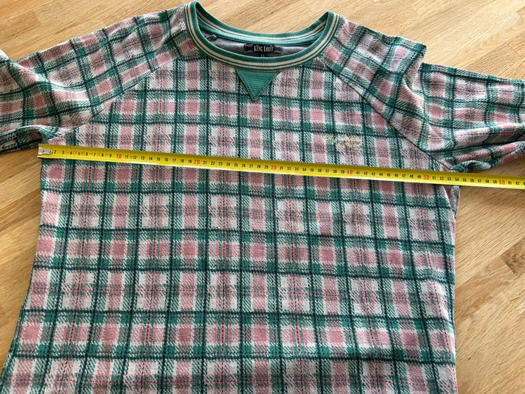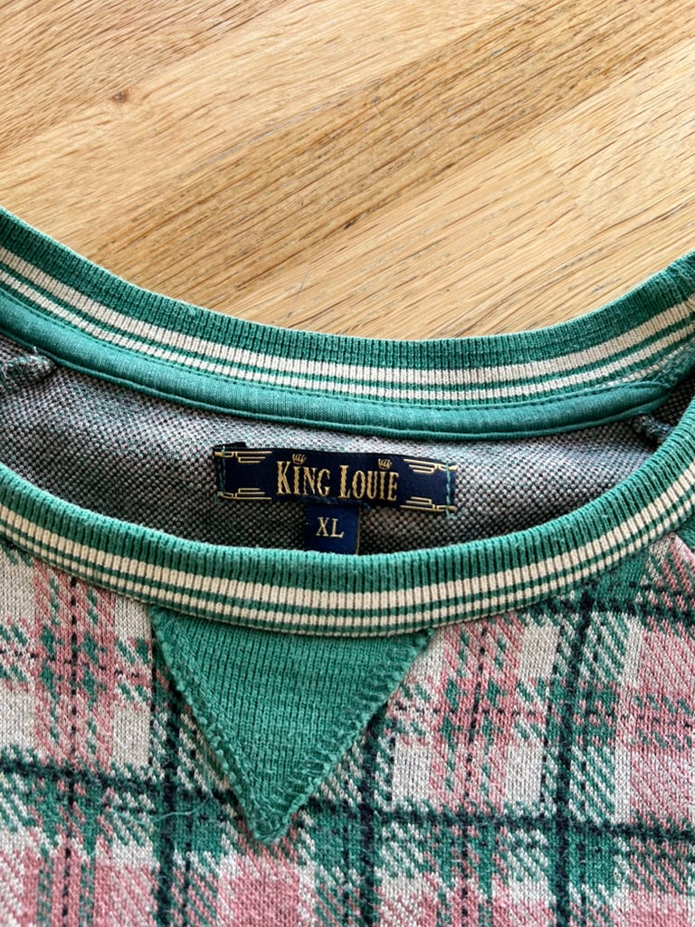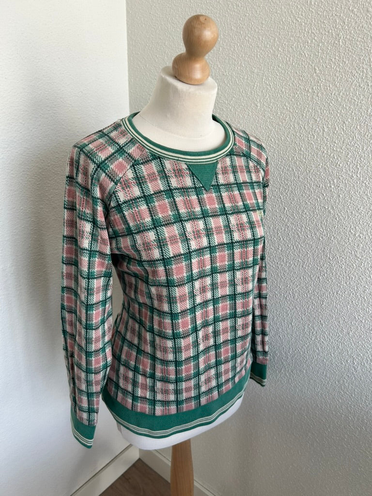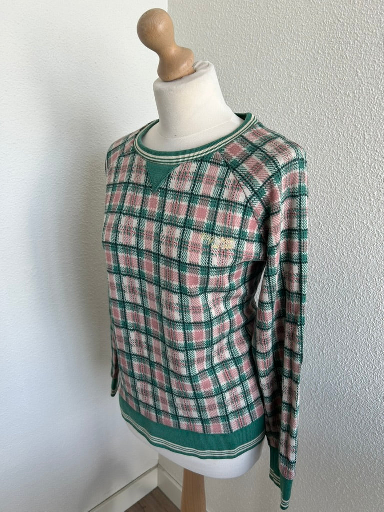 - Geruit patroon in groen met lichtroze en creme, en goud borduurwerk