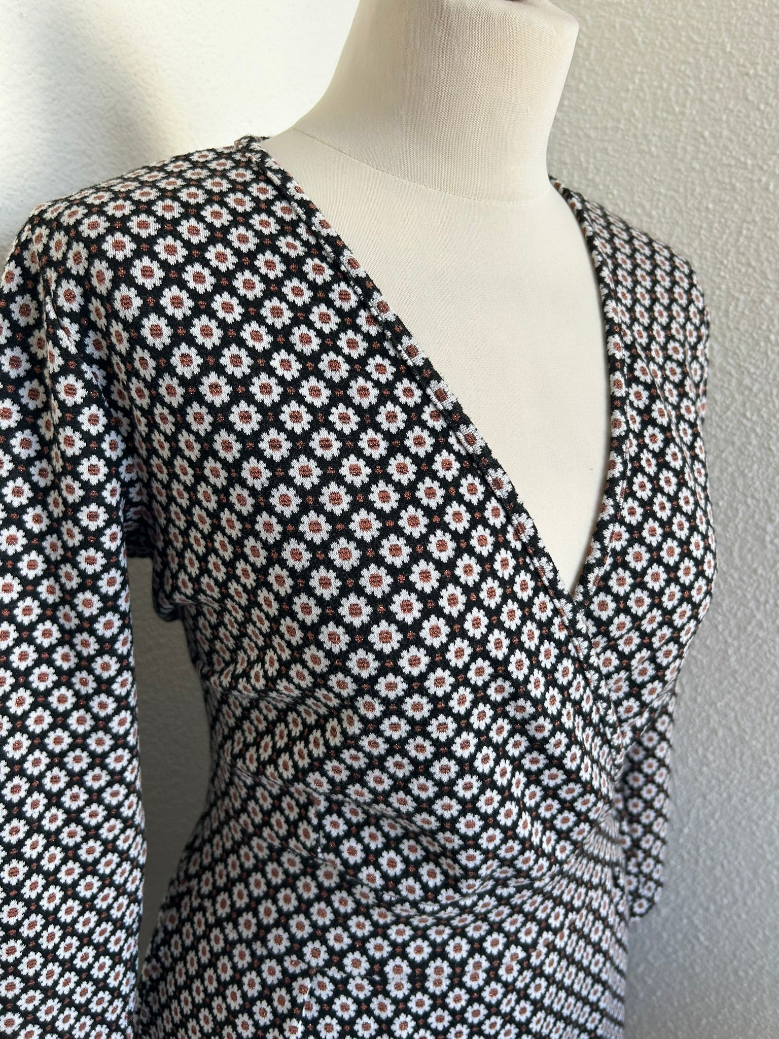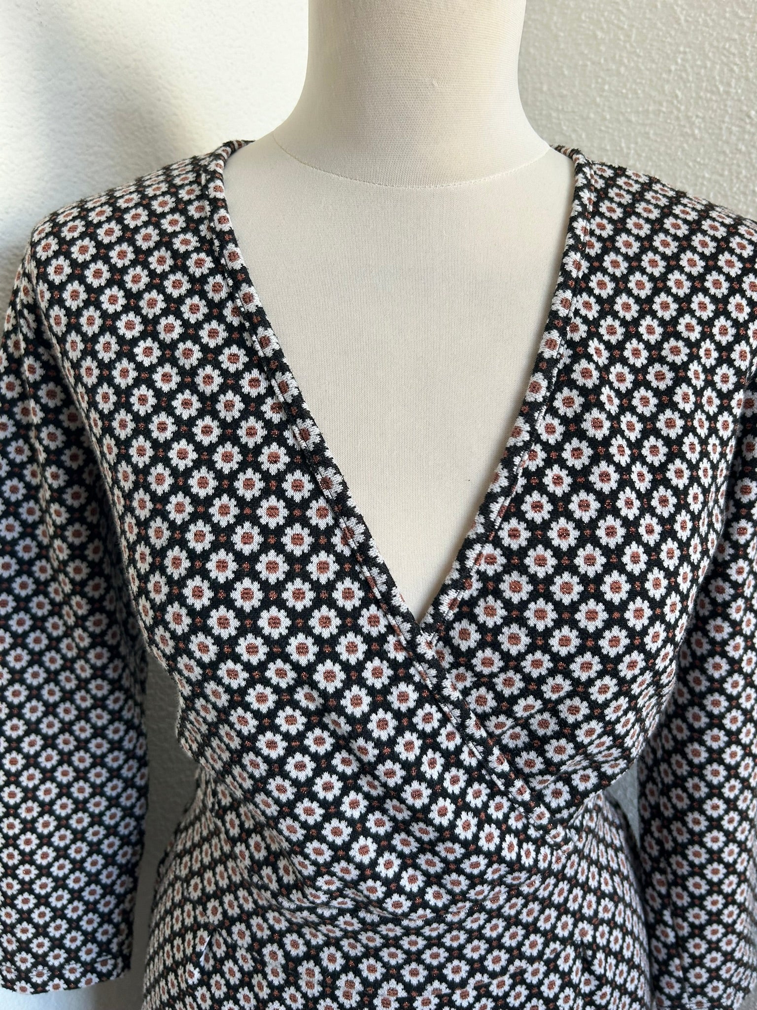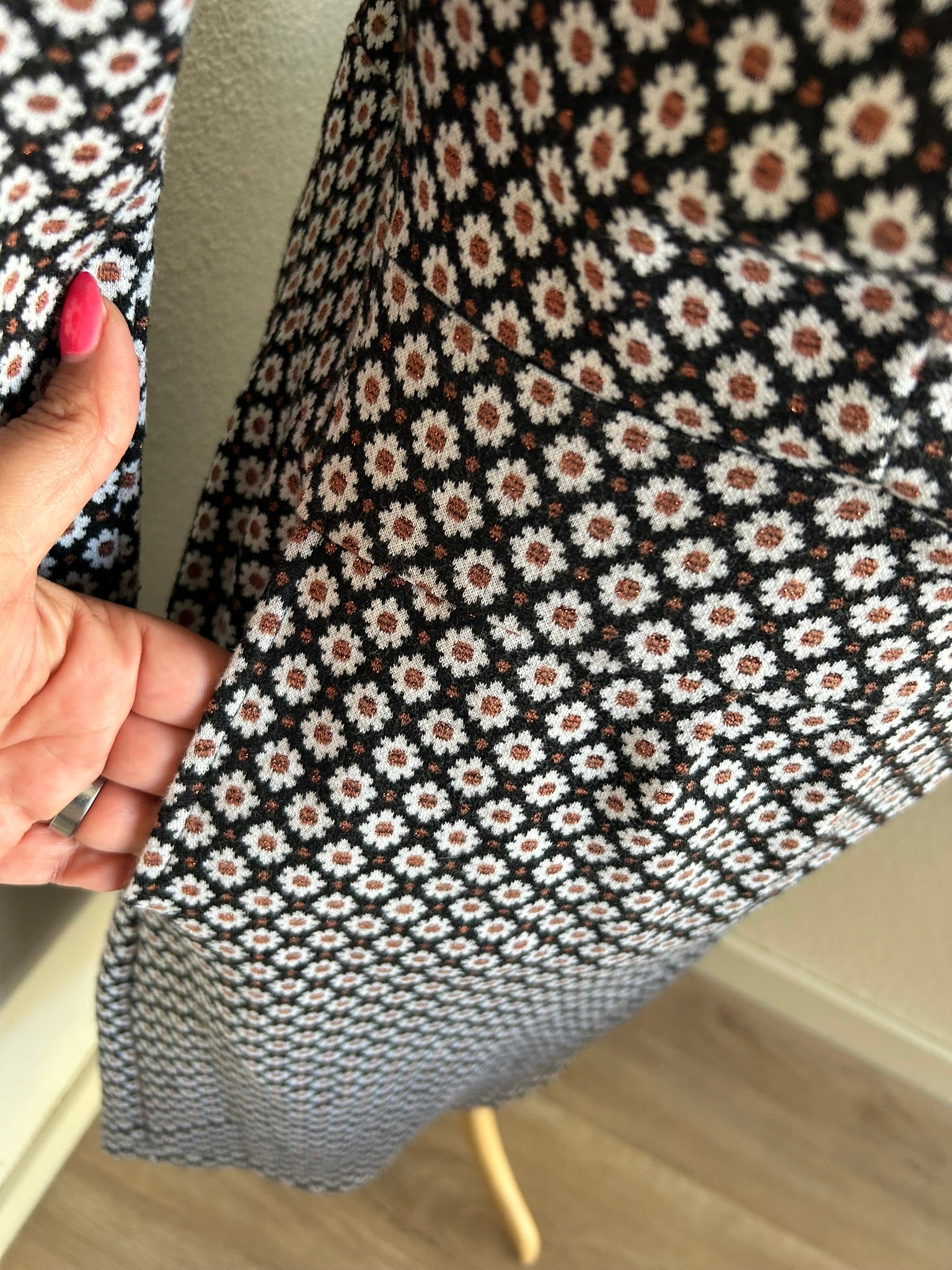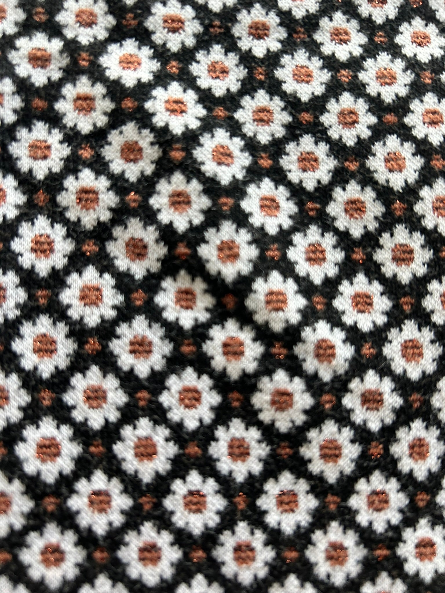 - Leuke najaars jurk in zwart met witte en koper/bronzen/bruine glitter bloemetjes/margrietjes